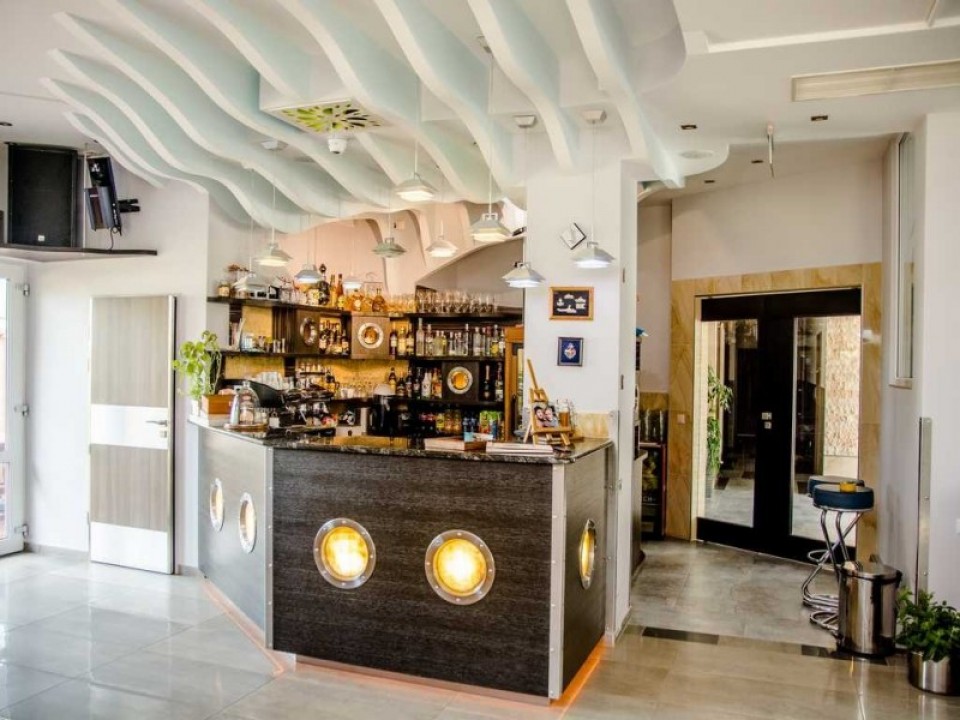 Restauracja Morskie Opowieści w RESIDENT RENE. Do dyspozycji Gości dwie sale: duża sala restauracyjna mogąca pomieścić 150 osób oraz sala bankietowa przewidziana na 40 osób.